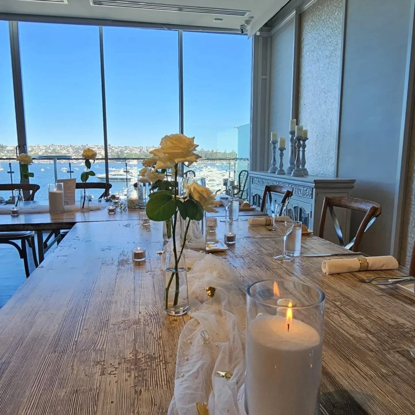 Bridal table, guest table centrepieces, cake table flowers, bar flowers, etc